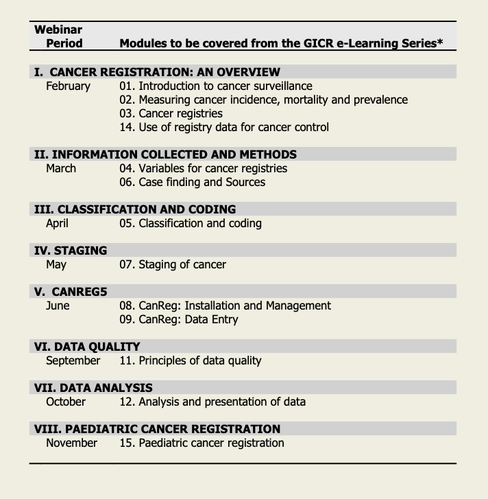 Eight webinars will be held online during this year across the IARC Regional Hubs.