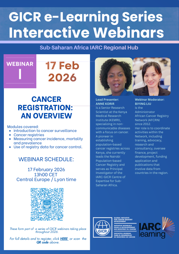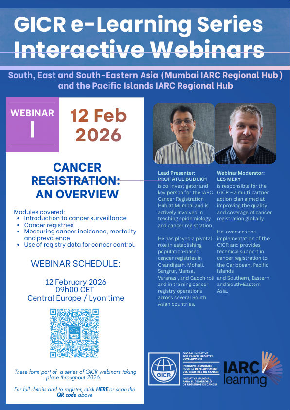 Please note that each webinar will cover the same topic but are offered by IARC Hub to provide opportunities for discussion between peers in the same part of the world. You are free to register for the webinar most convenient for you but it is strongly suggested to choose the one in your region. In addition, please note that the webinar in Latin America will be in Spanish.